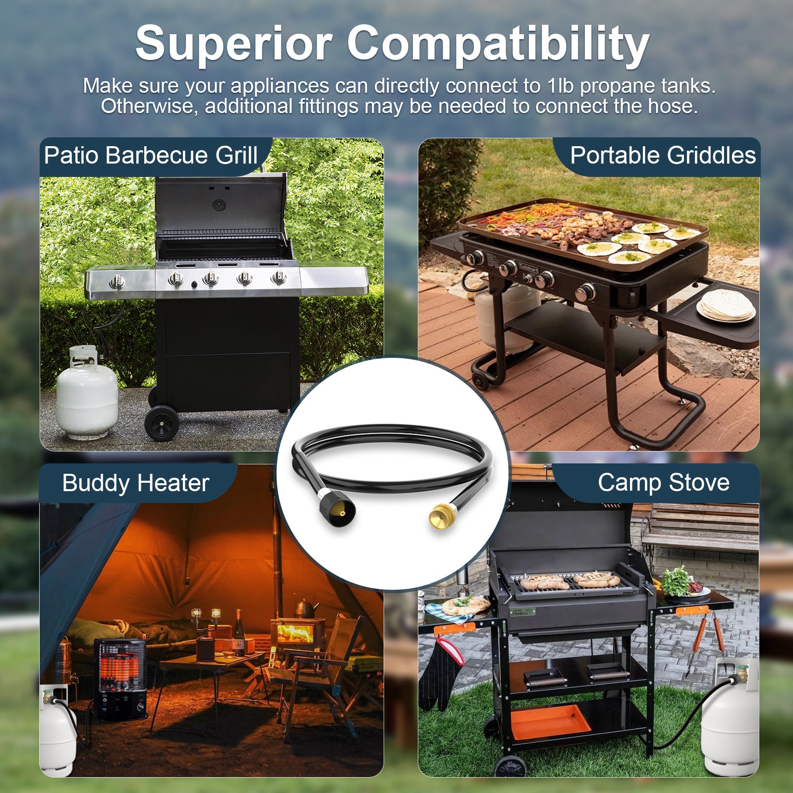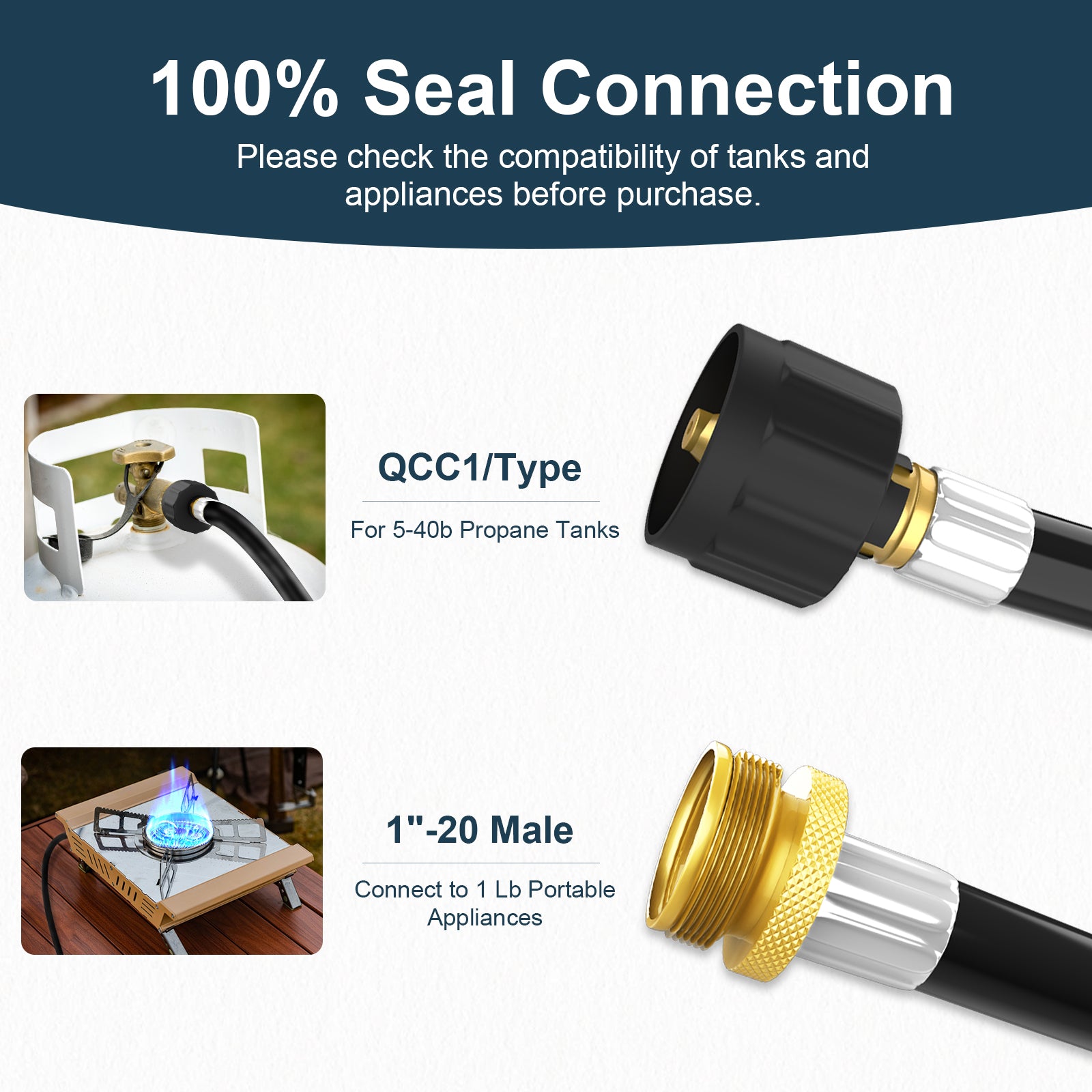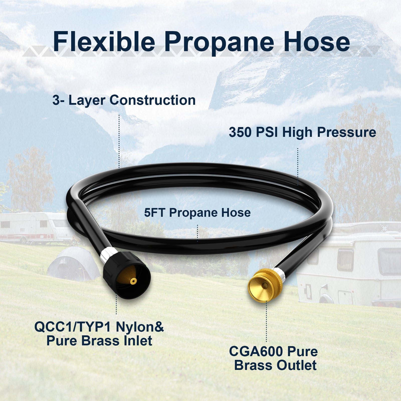 Hillhub 5 Feet Propane Gas Hose Adapter Connect 1lb to 20lb for Hillhub Portable Water Heaters, Converts 1lb Appliances to 5-40lb Tanks, Replacement for Qcc1/Type 1 Tank, Certified