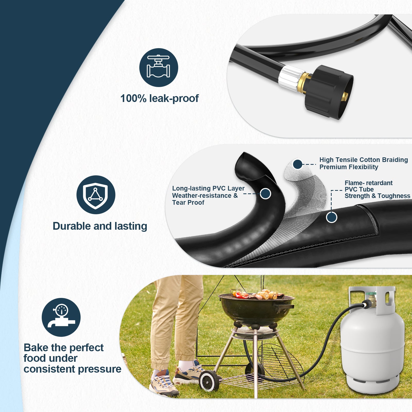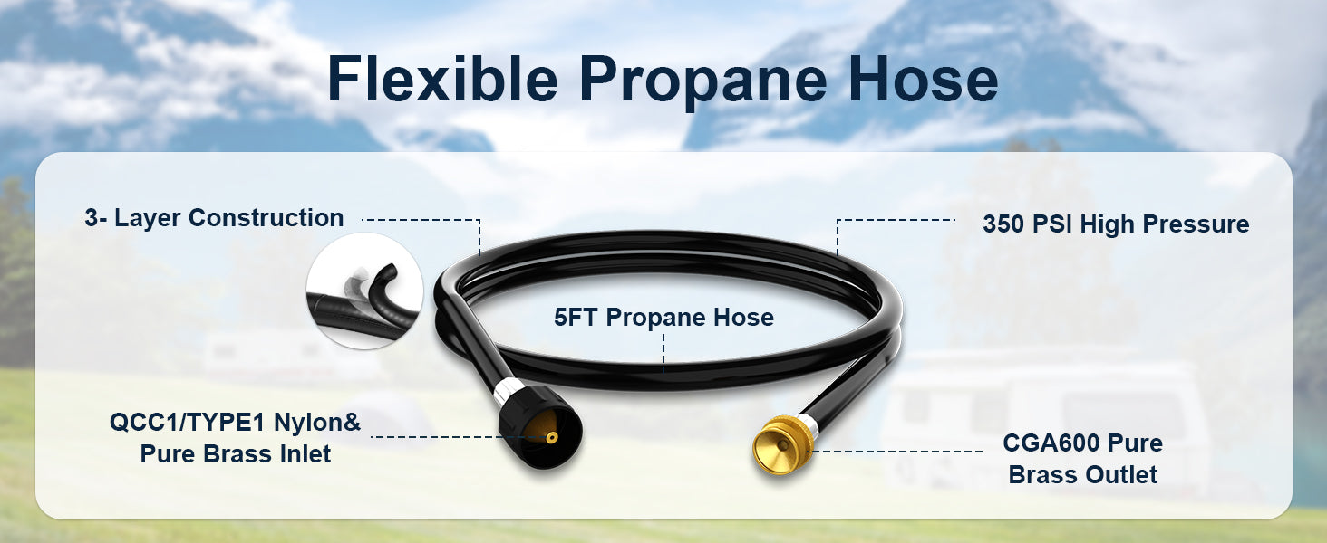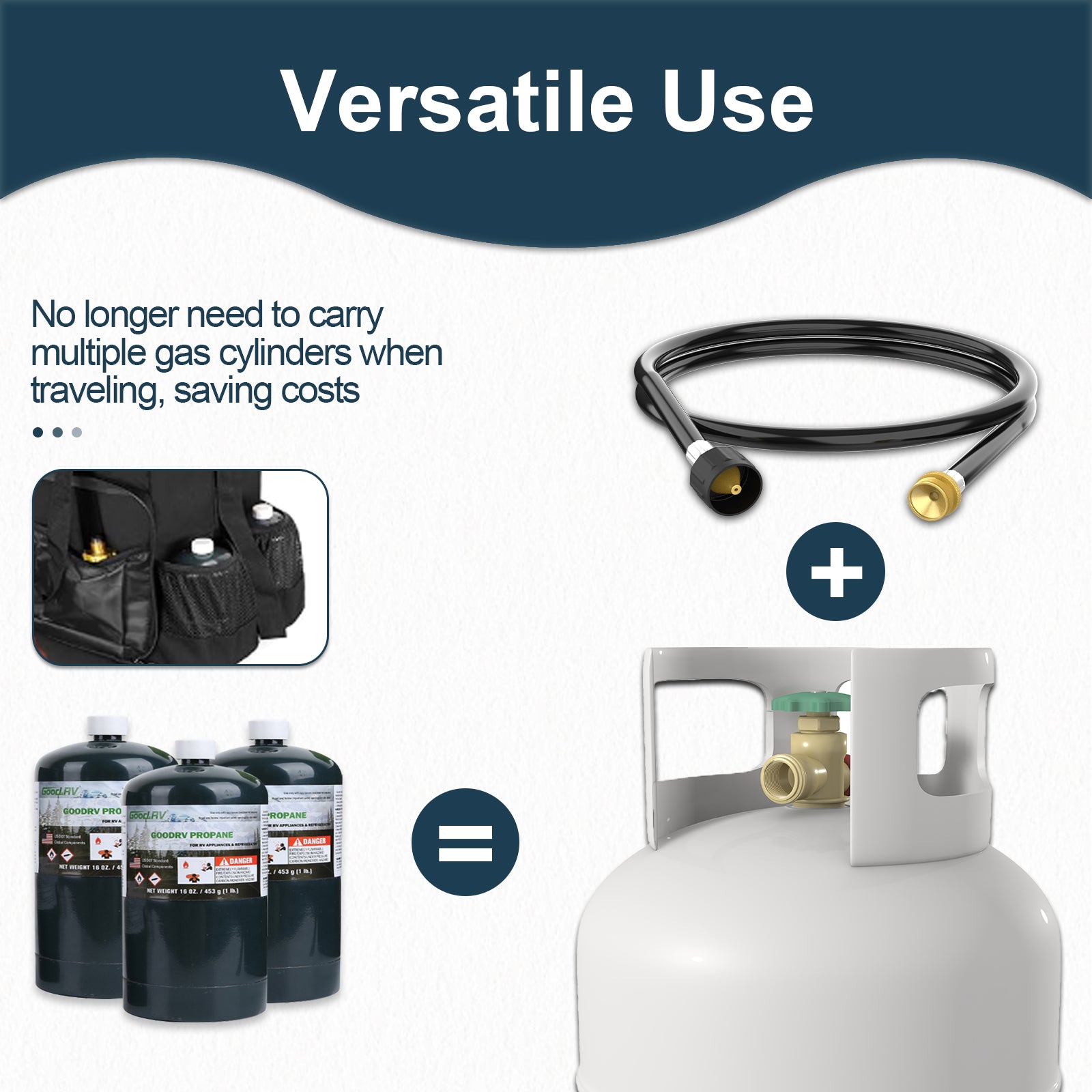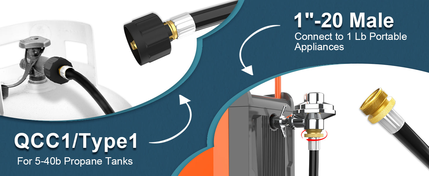 Hillhub 5 Feet Propane Gas Hose Adapter Connect 1lb to 20lb for Hillhub Portable Water Heaters, Converts 1lb Appliances to 5-40lb Tanks, Replacement for Qcc1/Type 1 Tank, Certified