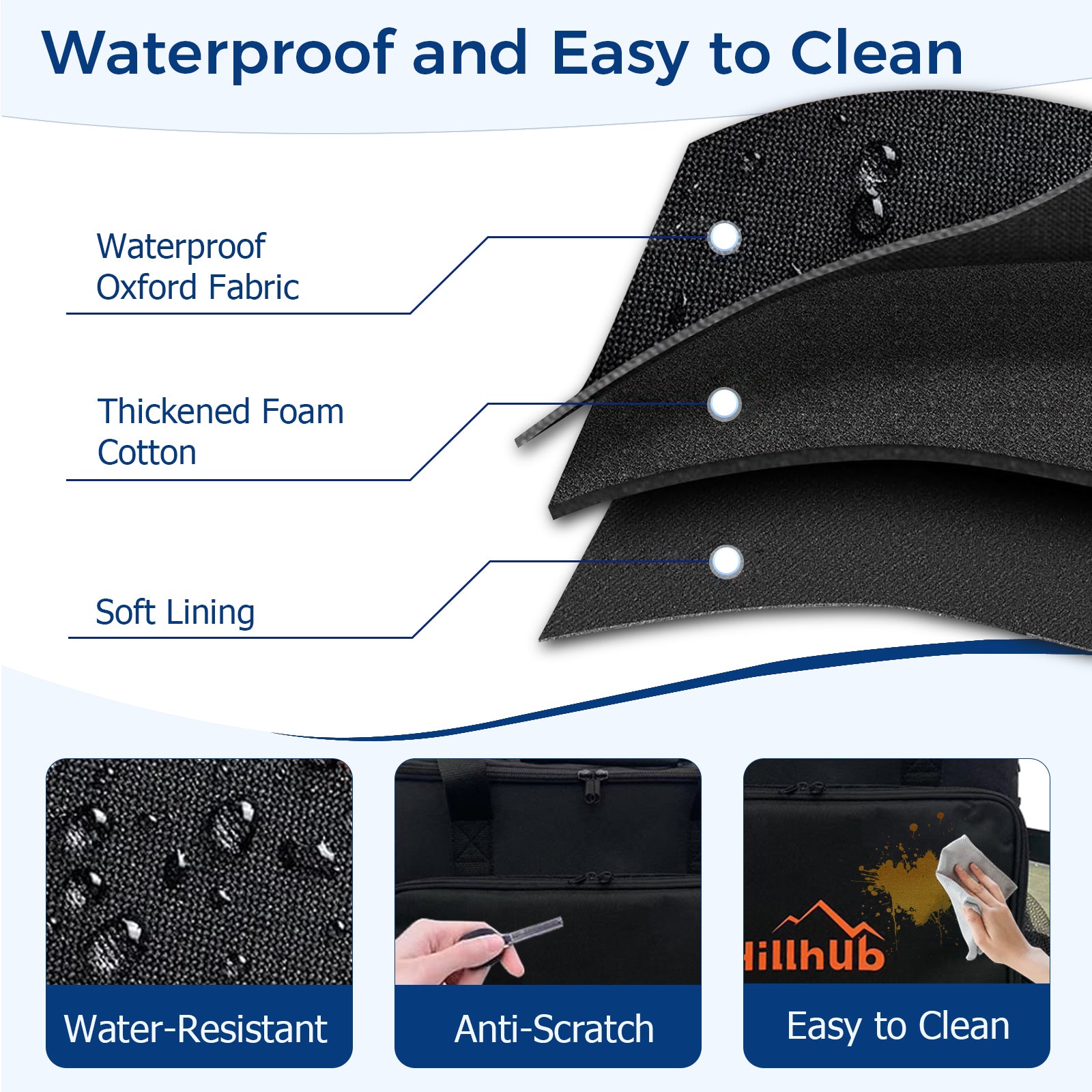 Made of waterproof Oxford fabric with a U-shaped double zippers, it keeps your gear dry in rain and is easy to clean.