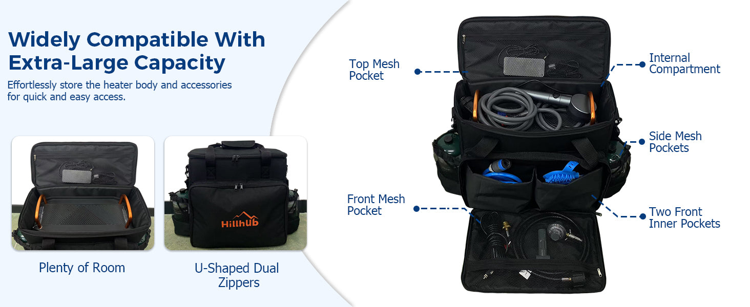 Hillhub Accessories Carry Bag for Portable Water Heater, Waterproof & Dustproof, Carrying Case with Pockets and Handles, Easy to Clean, Ideal for Outdoor Use, Only Bag